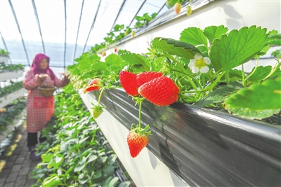 莱西日庄镇则走出了“一村一品、多村一品”的特色之路。在河头新村半亩花田家庭农场,8个温室大棚里的红草莓、白草莓陆续成熟,饱满的果实散发着诱人香气,吸引周边游客前来采摘。