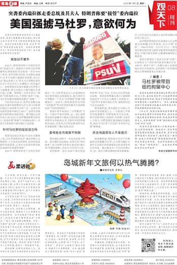 元旦假期,青岛文旅一片热气腾腾。元旦当日平台青岛整体旅游订单量同比增长118%。在多个文旅平台上,青岛相继上榜:去哪儿平台最受欢迎入境游城市TOP10,途家平台元旦假期民宿订单量最高TOP10城市,途牛平台境内自驾游热门目的地TOP10。