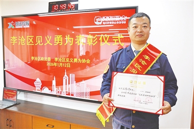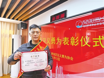 早报1月12日讯 1月12日上午,李沧区委政法委一行来到青岛城运控股公交集团李沧巴士公司举行了一场表彰仪式,390路公交驾驶员王修帅和早报独家报道的热心市民李光亮被授予“李沧区见义勇为积极分子”荣誉称号。这一刻,不仅定格了两位平民英雄的高光时刻,更连接起了一座城市关于勇气与善意的温暖闭环。