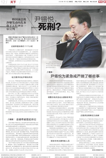 韩国负责调查紧急戒严事件的特别检察组13日晚以涉嫌带头发动内乱为由,要求法庭判处前总统尹锡悦死刑。法庭14日凌晨宣布,2月19日进行一审宣判。