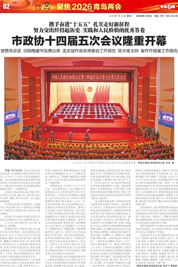 曾赞荣指出,今年是“十五五”开局之年。我们要坚持以习近平新时代中国特色社会主义思想为指导,深入学习贯彻党的二十届四中全会精神,认真落实习近平总书记对山东、对青岛工作的重要指示要求,携手奋进“十五五”,扎实走好新征程,努力交出经得起历史、实践和人民检验的优秀答卷。要努力交出成色十足的“发展答卷”,全方位扩大内需,持续强化科技创新引领,加快构建现代化产业体系,推动经济实现质的有效提升和量的合理增长。要努力交出彰显优势的“特色答卷”,在经略海洋上走在前列,在文旅融合上打造标杆,在健康服务上塑强品牌,不断增强城市核心竞争力。要努力交出开拓创新的“改革答卷”,深化重点领域改革,持续优化营商环境,稳步扩大制度型开放,更好为高质量发展增动力、添活力。要努力交出可感可及的“民生答卷”,进一步提升城市品质,优化公共服务,厚植生态底色,守牢安全底线,不断实现人民对美好生活的向往。