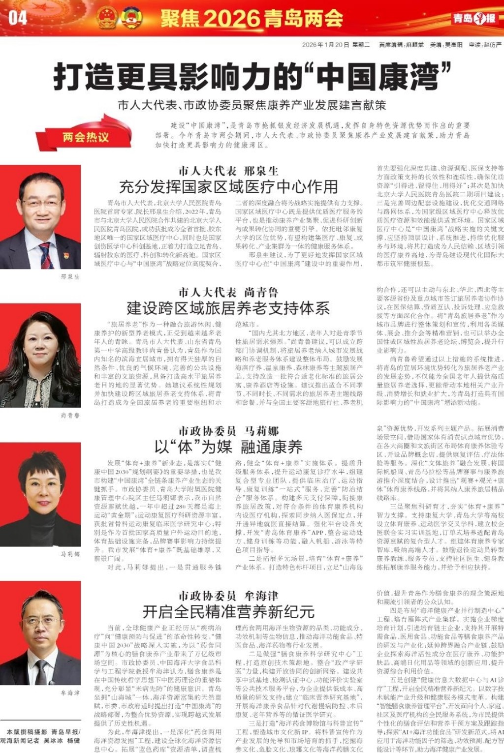A01 头版 A02 聚焦2026青岛两会 A03 聚焦2026青岛两会 A04 聚焦2026青岛两会 A05 今日看点 A06 一线探访 A08 文体 A09 应知 A10 健康 A11 健康·医声 A12 天下
