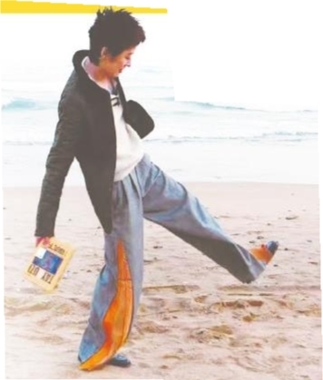 曾轶可青岛海边打卡。