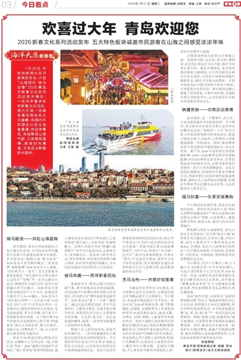 1月26日,市政府新闻办召开新闻发布会,介绍“山海相约 骏马迎春”2026青岛市新春文化系列活动有关情况。一系列丰富多彩的新春文化活动,倾力打造一场具有青岛特色的文化盛宴,向海内外的朋友们发出诚挚邀请:欢迎来青岛,体验既有山海气韵、又有里院温情,既有时尚潮涌、又有舌尖鲜香的中国年。