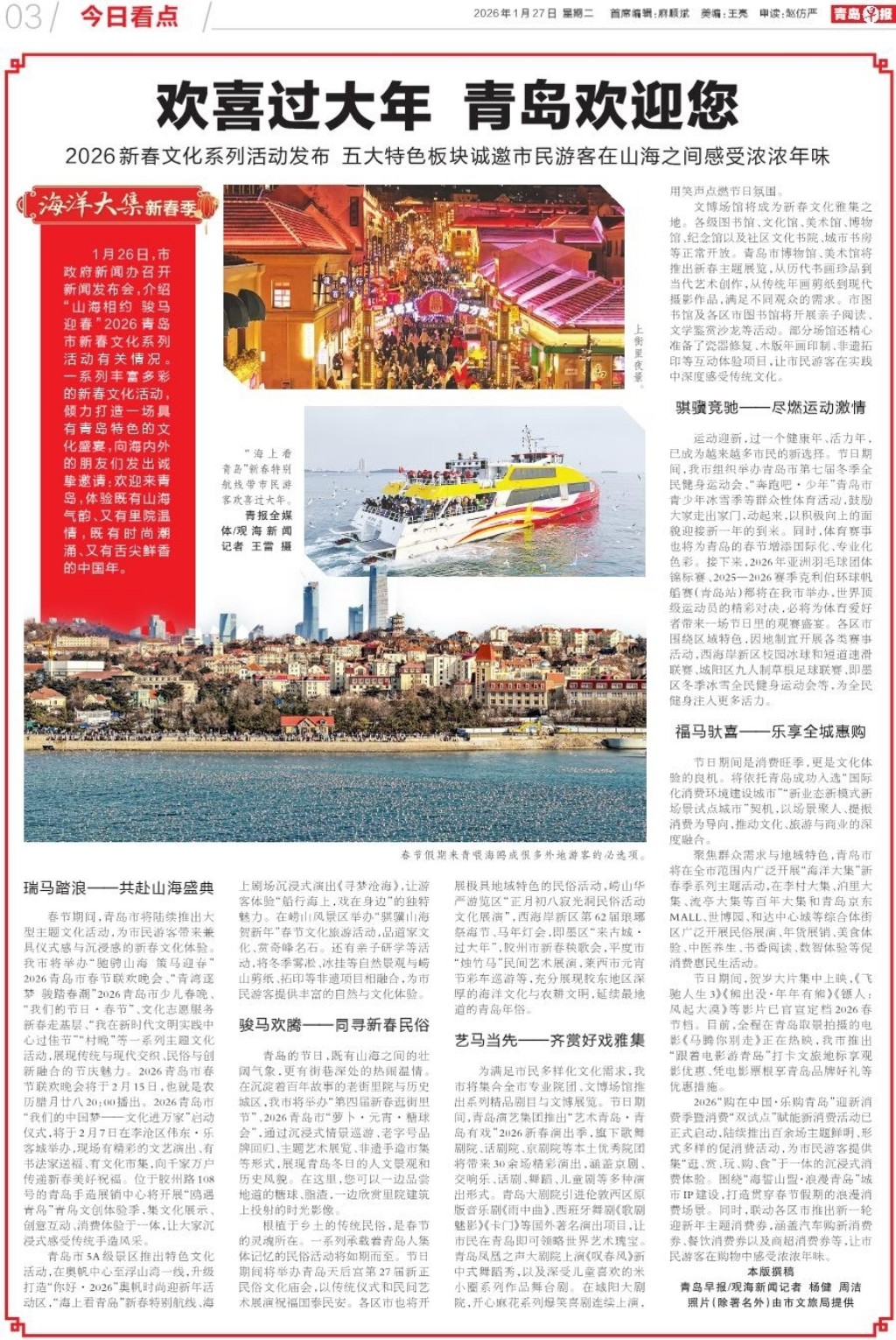 A01 头版 A02 划重点 A03 今日看点 A04 青岛面孔 A05 乡村振兴齐鲁样板 A06 身边事 A07 都市圈 A08 应知 A09 文娱 A10 健康周刊 A11 健康·医声 A12 天下