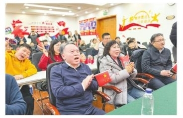 家乡人民为公俐呐喊加油。 青报全媒体/观海新闻记者 高静文 摄