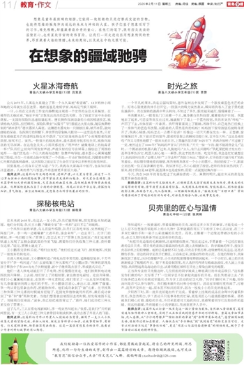 想象是童年最斑斓的翅膀,它能将一枚粗糙的贝壳打磨成友谊的信物,也能将思维的触角伸向遥远的未来与神秘的火星。孩子们基于想象而写下的习作,难免稚嫩,却蕴藏着最珍贵的童心。在他们的笔下,既有指尖流淌的温情匠心,也有星辰宇宙的奇伟冒险。让我们一同走进这些用想象构筑的世界,那里藏着大海的馈赠、未来的奥秘,以及成长中的无限可能。