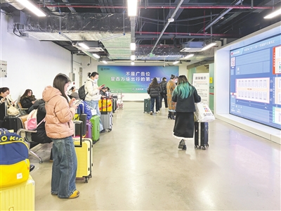 今年春运期间,停车场全面启用“智慧调度、智能寻车、全域覆盖”的运维体系。依托智慧调度系统,停车场采取“分区管控、智能引导、动态分流”模式,入口根据车流实时调节放行,避免拥堵;候客区车辆按序停泊接客,实现“即到即接、即接即走”的“丝滑”节奏。据介绍,车辆入场停车后,智慧大屏会自动识别车牌号并在屏幕上显示,乘客看到车牌号后按照显示的车位就可以快速找到车辆。