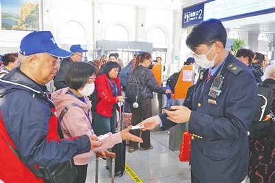 老年旅客乘坐专列出行游玩。国铁济南局青岛车务段供图