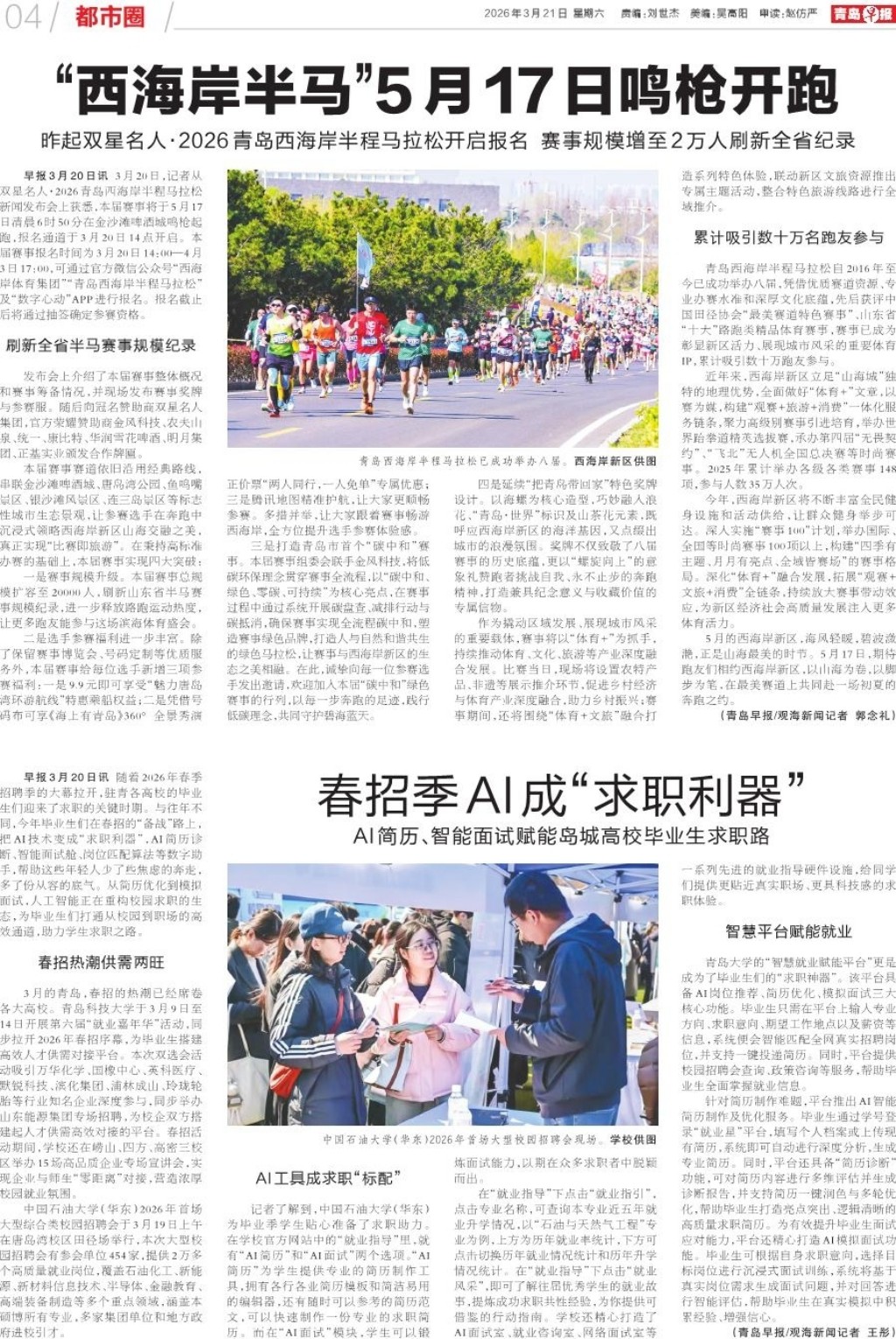 “西海岸半马”5月17日鸣枪开跑