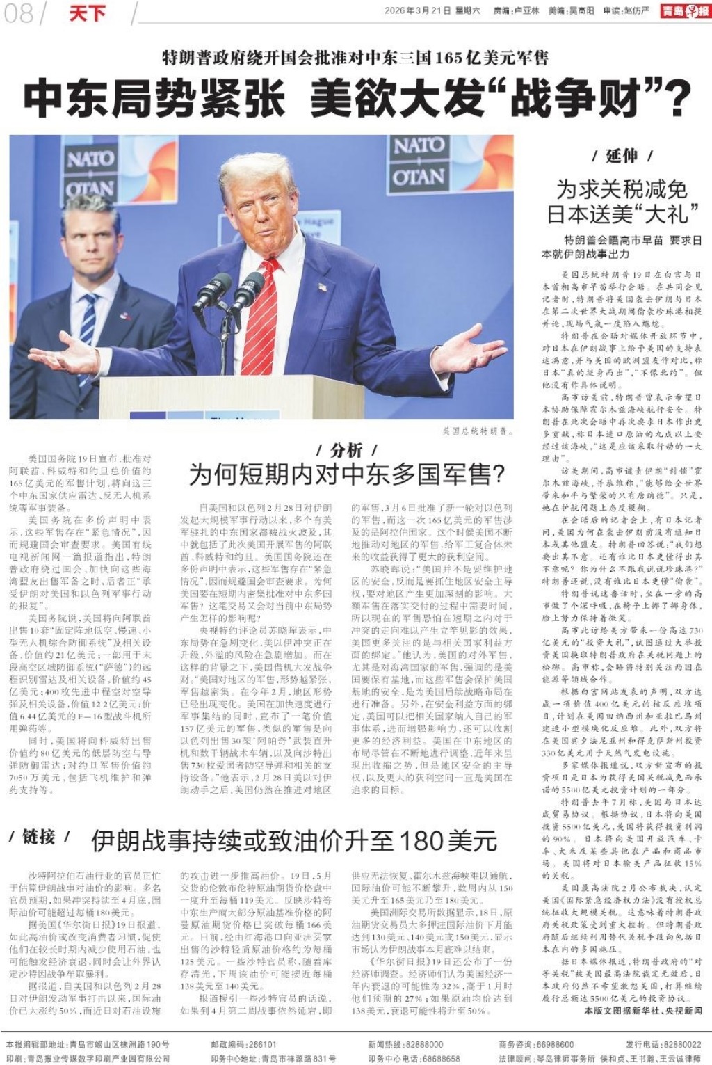 中东局势紧张 美欲大发“战争财”?