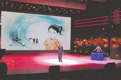 孙启孟和青岛沙画师孙霖(右)现场真情致敬《天使的馈赠》。