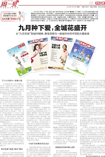 从“微尘”,到“催泪红包”,再到“九月天使”——青岛早报用20多年时间,在这座城市挖掘、塑造了一个又一个爱心典型。这些典型不是孤立的,它们共同构成了青岛城市文明的精神谱系,从关爱他人到奉献社会,青岛这座时尚美丽的爱心之城凝聚起越来越多向善的力量,散发出独特的魅力和温度。正如陈行甲所说:“这放在全国都是很罕见的,构成了整个青岛非常独特的大爱氛围。”