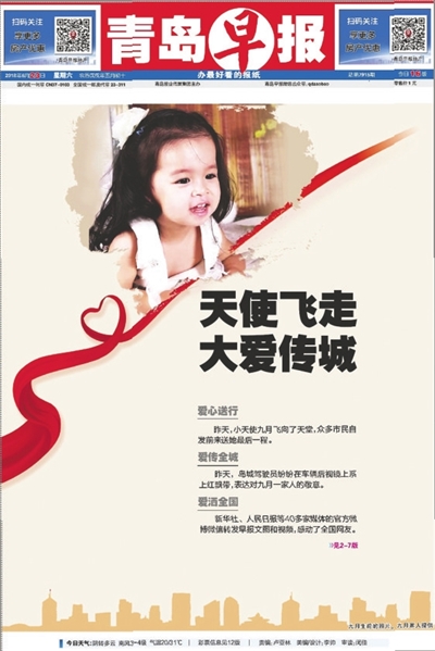 同样是在2019年,4岁的男孩小北因车祸离世,他的家人也做出了同样的选择。三个小天使,在青岛早报的报道下,被并称为“天使”系列报道。这组报道共推出200多个整版新闻版面、上千条网络推文,全网总点击量超15亿次。人民日报连续两天在微信公众号头条转发早报的报道,让无数读者为之动容。