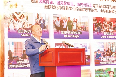 深圳理工大学党委书记朱迪俭在招生会上为家长介绍学校情况。