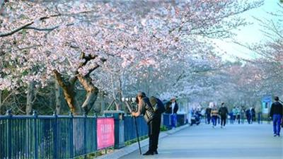 市民在中山公园拍摄樱花。