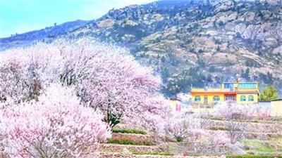 崂山区庙石村大片樱桃花盛开。