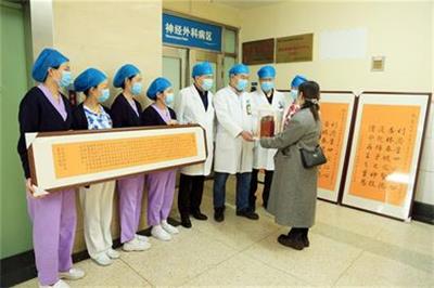“新年迎来重生,这份对医生的感激,医患真情的弘扬值得我们传递给更多人。 ”37岁的市民金女士,望着躺在病床上一切从“零”学起的丈夫,依然充满信心。近日,患者家属金女士将花费一个多月时间创作的文言书法作品,亲自送到了救治丈夫的青岛市市立医院多个科室和医生手中。这背后是患者严重车祸后一百多天的抢救,有惊心动魄,更充满了暖心和正能量。正是医生的职业付出和来自患者的坚定信任,给无数病患带来了正能量与希望。