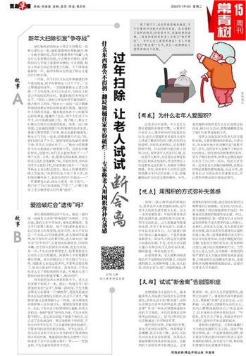 很多人会抱怨家中的老人因为囤积杂物,不喜欢整理收拾物品,不讲卫生,而且面对他人的劝解仍是“屡教不改”。其实,这些老年人是赋予了物品人性化特征,因为害怕丢掉重要的东西,夸大了物品的功用,如果失去物品就好比失去了自己的一部分,因此无法丢弃。还有的老人因脑功能障碍,表现出对物品放置的感知减弱,无法分类,也容易忘记与物品相关的重要信息,所以喜欢将物品放在视线范围内。