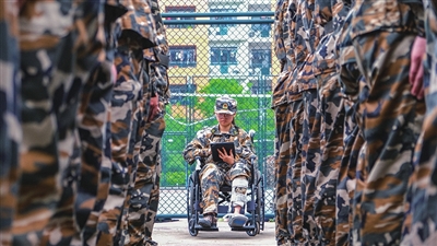 “昕月的心里有一股倔劲,对待训练的态度也十分端正,她一直因为受伤不能参加训练而感到遗憾。”许昕月的辅导员杨琪硕介绍,昕月在军训动员大会上,听到升国旗、奏国歌的口号,下意识地从轮椅上站起来,扶住轮椅扶手面向国旗行注目礼。许昕月告诉记者,虽然同学们和老师已经共处一年时光,但大家了解还是不多。“训练之余,导员老师用萨克斯、口琴等乐器为同学们加油鼓劲。通过这次军训,我们重新认识了多才多艺的导员老师。”许昕月说。