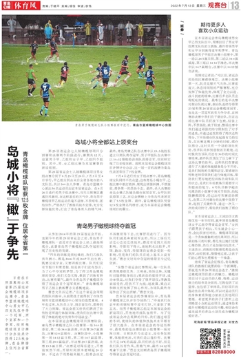 结束了省运会征程后,青岛橄榄球队的教练们就要面临一个新课题,那就是为第26届省运会选才。“激情是橄榄球项目最大的魅力。橄榄球项目对于运动员的人格、性格、运动能力的培养是全面的,它既包括了足篮排,也包括了举摔柔,田径项目的跑动也在其中体现,所以对运动员们的身体素质和能力要求比其他项目要高。希望更多的孩子们喜欢上这项略显小众的运动项目,通过体验来提升对橄榄球运动的兴趣,相信会有越来越多的青岛小球员成为橄榄球爱好者。”