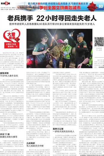 ~~~胶州市退役军人应急救援队60名队员行程200多公里连夜找回走失的70岁老人