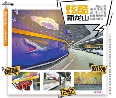 龙山人防停车场内部融入各类青岛元素(组图)。观海新闻/青岛早报记者 张孝鹏 摄