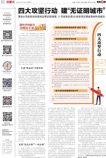 ~~~青岛8月底前完成现有证照证明清理、11月底前实现50类常用证照纸质材料免提交