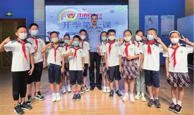 反诈知识进校园、向校园欺凌说“不”……昨天,全市中小学生迎来开学日,为进一步建立“平安校园联盟常态共建战略机制”,推动校园安全综合治理工作向纵深发展,青岛市公安局市南分局、市南区教育和体育局、青岛早报共同发起的“警旗飘扬护校园”活动深入各学校,开展“开学第一课”系列主题活动,把法治教育、防诈骗、防校园欺凌、防火灾等知识纳入“开学第一课”内容,积极开展主题宣传教育活动。