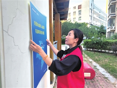 为了营造人人知晓创城、人人参与创城的氛围,姜华创新宣传手段,加大宣传力度,让文明创城深入人心。在线上,她提出通过微信公众号、楼组长群、小区群等平台和方式,积极发放“文明餐桌我践行”倡议书,增强居民节约粮食、文明用餐的思想意识;在线下,她则组织社区第八网格成立“垃圾分类小快板”队伍,走进网格、走进广场,通过鲜活生动的快板表演,开展垃圾分类宣传,让垃圾分类成为文明新时尚。“宣传工作需要重视细节,落到实处,每天我们工作人员和志愿者都会在辖区内巡查,看看这些创城展板张贴是否规范、是否美观、是否整齐,如果发现有什么问题就及时整改,同时发动市民一起加入创城宣传队伍,一起参与创城行动。”