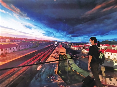 展馆最为亮眼的部分,是利用XR技术,设置了多处沉浸式体验板块,展现青岛建置以来,中山路及其周边老城区的肇始、发展以及市民生活、风俗习惯的演变。特别是利用上、下、前、左、右五面屏幕打造的《百年中山路》沉浸式影院,带给观众极强的沉浸感和场景感。跟随市南区精心打造的主题影片,观众可如同自由飞翔的小鸟般,一会儿于空中俯瞰老城的山和大海,一会儿在地面上目睹中山路周边各种知名建筑拔地而起;一会儿置身里院领略老城烟火,一会儿漫步栈桥上空感受老城的灯火辉煌……此外,该展馆还打造了一辆“光影巴士”,“乘坐”这辆巴士,便能感受到中山路不同年代的商业发展历史。
