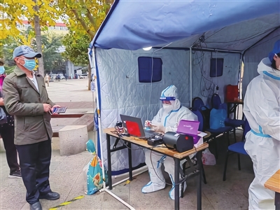 “我负责聚仙路12号的消杀工作,我爱人负责聚仙路16号的,中间就隔着一座楼;核酸登记我俩都在老年乐园的点位上,但因为岗位不同,一忙起来只想着干活,根本看不见对方。”薛蕾说。