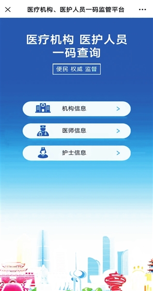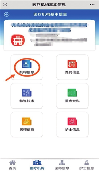记者看到,扫码进入APP界面后,可以很方便地查阅到该机构的机构信息、处罚信息、特许技术、重点专科、医师信息和护士信息等执业和监管信息。