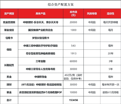 至于闲置资金的配置,则以定期存款、理财、基金、终身寿险为主。在市场总体不够景气的大环境下,投资应以稳健为主,可选择一部分资金购买三年期大额存单,锁定长期利率减少资金转存,同时配置部分终身寿险,作为长期资产配置。同时,王先生的孩子正在读二年级,以后的教育资金等必须提前规划,定期存款、终身寿险也正好可以满足这一需求。理财产品、基金虽然会跟随市场行情有所波动,但中长期持有也有助于增厚组合收益。另外,在全球经济走势尚不甚明朗的情况下,王先生也可根据自身情况选择投资黄金,不管是投保值还是传承给后代子女都是不错的选择。对于具体资产配置明细,王先生不妨参照上图图表。观海新闻/青岛早报记者 杨忠升