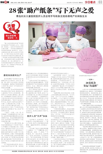 ~~~青岛妇女儿童医院医护人员全程手写纸条交流助聋哑产妇保胎生女