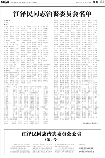 为表达全党全军全国各族人民对江泽民同志的无比崇敬和深切悼念之情,现决定: