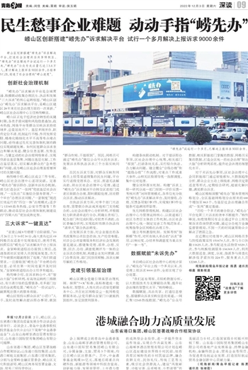 ~~~崂山区创新搭建“崂先办”诉求解决平台 试行一个多月解决上报诉求9000余件