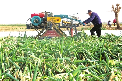 昨天上午11点,记者在平度市仁兆镇大代家庄村的一处葱田里看到,随着一辆自动化大葱收获机徐徐前进,农户完成起葱、扎捆环节,再逐一将大葱搬上车。作为仁兆镇的代表性农产品,这里的大葱葱白长、葱干瓷实,吃起来又脆又甜,成为市民餐桌的“宠儿”。凭借声名远播的品质,让来自青岛恒洁园林环卫有限公司负责人王德林直接订购了两万斤。