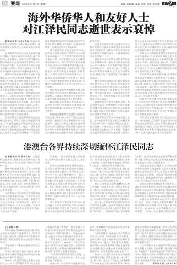 海外华侨华人和友好人士对江泽民同志逝世表示哀悼