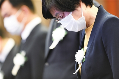 在天津港太平洋国际集装箱码头,职工肃立默哀。