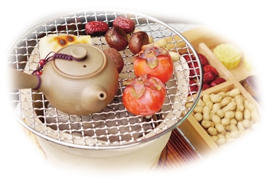 “围炉煮茶”可以是阳春白雪,也可以特别接地气。据说,在火塘烤茶的云南,小孩不爱喝茶,但也爱往火塘边凑,大口吃茶果和茶点。火塘烤茶的茶点也是烤的,传统的有如烤建水豆腐、烤饵块等。而当镜头转移到北方的茶馆,炭火烧烤除了茶之外,可以烤柿子、烤橘子、烤栗子、烤桂圆,甚至烤年糕、棉花糖,各种食物色、香、味俱全,随意组合。围炉煮茶要的是闲适、平静,所以茶点不能油腻,茶和茶点要慢慢享用,而不能一吃就饱。