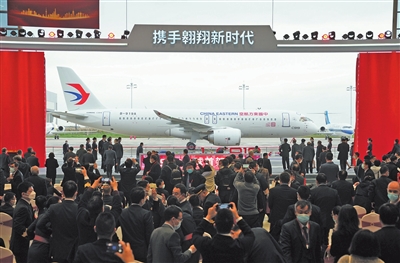 从交付仪式的时间、“首秀”飞行的航班号到这架飞机的“身份证号”,处处凸显了“919”元素。“9”与“久”同音,这是中国人的久久期盼,也寓意着国产民机产业发展久久为功。