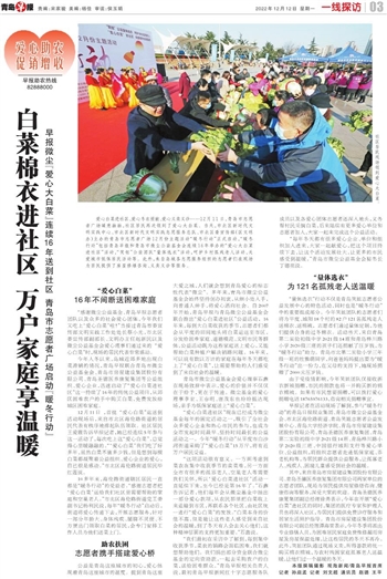 ~~~早报微尘“爱心大白菜”连续16年送到社区 青岛市志愿者广场启动“暖冬行动”