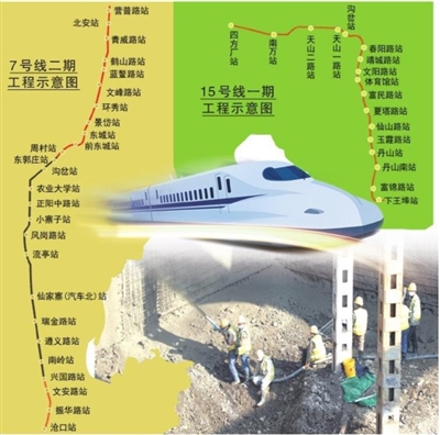 昨天记者走在地铁7号线二期青威路站的施工现场看到,在深度近12米的基坑内,两名技术人员正前后重叠式手持高压湿喷机出管口,身后7名工人稳定住管道,利用高压将混凝土喷灌到内壁,以达到固定支护基坑侧壁的效果,现场近40名工人分工明确,忙碌而有序。