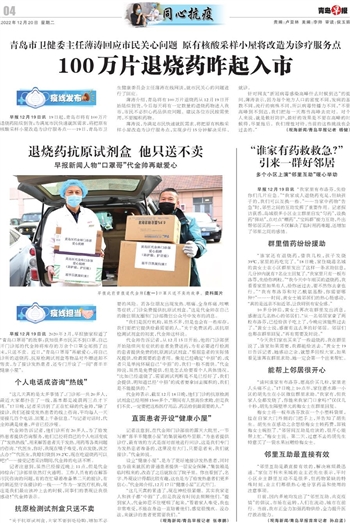 青岛市卫健委主任薄涛回应市民关心问题 原有核酸采样小屋将改造为诊疗服务点~~~