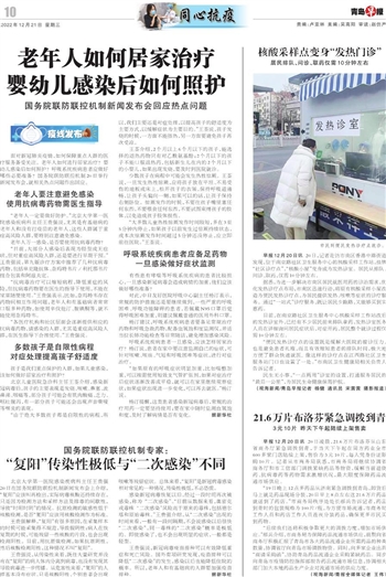 早报12月20日讯 20日,记者走访市南区香港中路街道发现,位于南京路社区卫生服务中心的核酸采样工作站,挂牌“社区诊疗点”,“核酸小屋”变身成为发热诊室。居民从排队、问诊、取药,仅需10分钟左右。