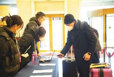 昨天上午,记者在汇泉王朝大酒店注意到,委员们报到流程进一步简化,实施了无纸化、无接触报到。进入现场,首先是通过门禁查验参会证照,进入大厅后还有AI数字人红外测温设备,探头随时抓拍测量进入会场者的体温。委员们现场做完核酸检测后,在工作人员的指引下,打开青岛政协App,扫描二维码签到。
