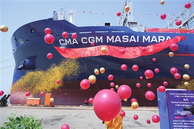 早报5月5日讯 4月27日,青船公司为比利时CMB公司建造的5900TEU系列造船订单的首制船正式命名。据介绍,4年前,从合作建造20.6万吨散货船开始,青船公司与CMB公司建立起密切的合作关系,本次命名的5900TEU首制船“MASAI MARA”号的5900集装箱船1号船,是双方合作建造6艘集装箱系列船的第一艘,也是双方深化合作的最新成果。该船型是山东省目前在建载箱量最多的集装箱船,是青船公司大中型集装箱船建造水平的又一次亮丽展示。