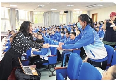 作家阿占是一位对家乡充满深情的青岛土著,她热爱老城,用文字描摹岛城风物、人文民俗。昨天,她作为青岛市2023年全民阅读·作家进校园暨版权保护宣传活动的特邀嘉宾,来到青岛第51中学,与初一学子们共话文学世界中那些大家熟稔于心却又经常忽略的风景。这场讲座更似一堂本土风物的通识课程,阿占将惯常诉诸于笔端的文字转换为话语,用另一种方式书写着“献给故乡的蓝”,令孩子们受益匪浅。