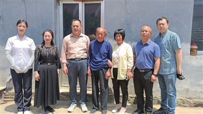 5月19日上午,大家一起赶到了赵有墨老人家中,得知来了青岛市、五莲县退役军人事务局的工作人员,赵有墨老人提前在门口迎接大家。寻亲专班工作人员把花生油、大米、鸡蛋等慰问品以及1000元慰问金交到赵有墨老人手中。